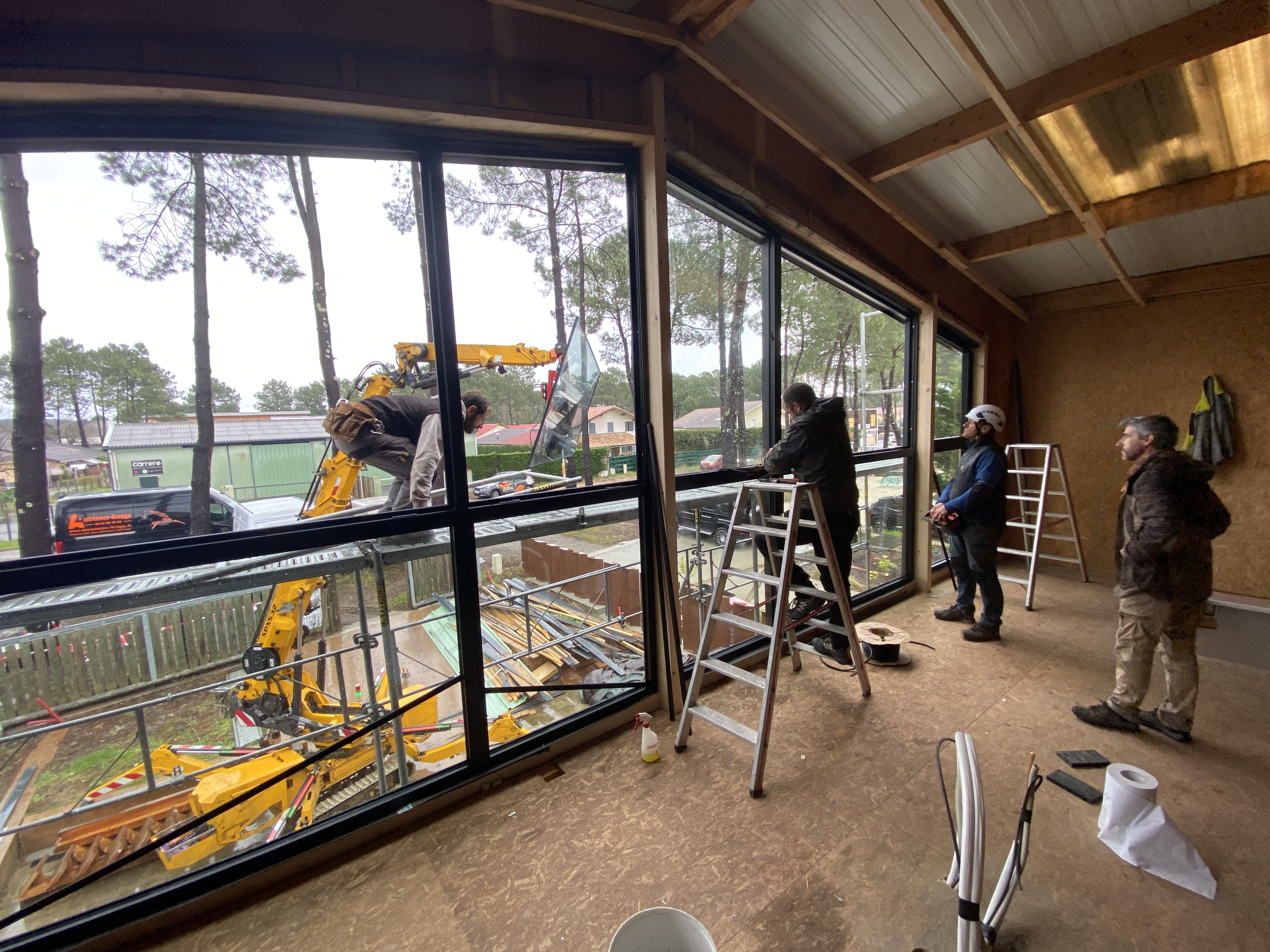 🔧 Chantier en cours à Hossegor : de grandes menuiseries aluminium pour la boutique « La Belle Vue »